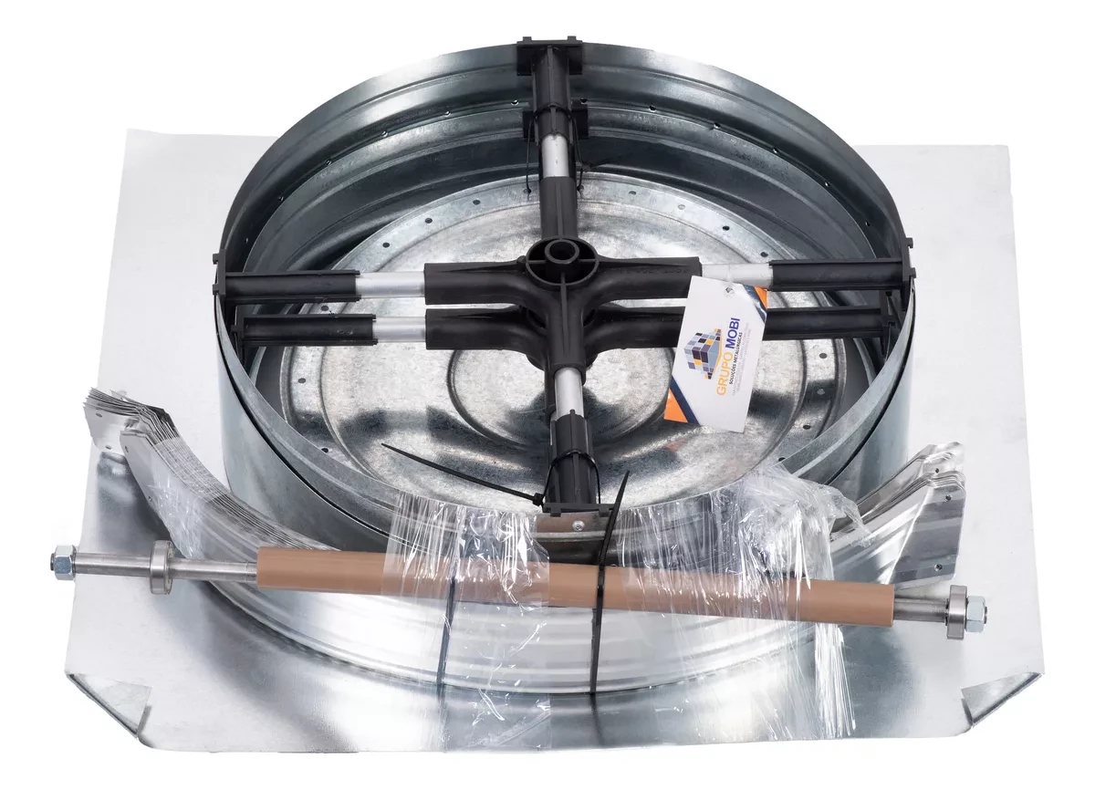 Esse kit acompanha base + regulador, para fixação no telhado e nivelamento do exaustor.